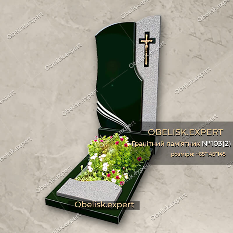Оригінальний комбінованний пам’ятник із сірого граніту Покостівка, та чорного граніту Габро.