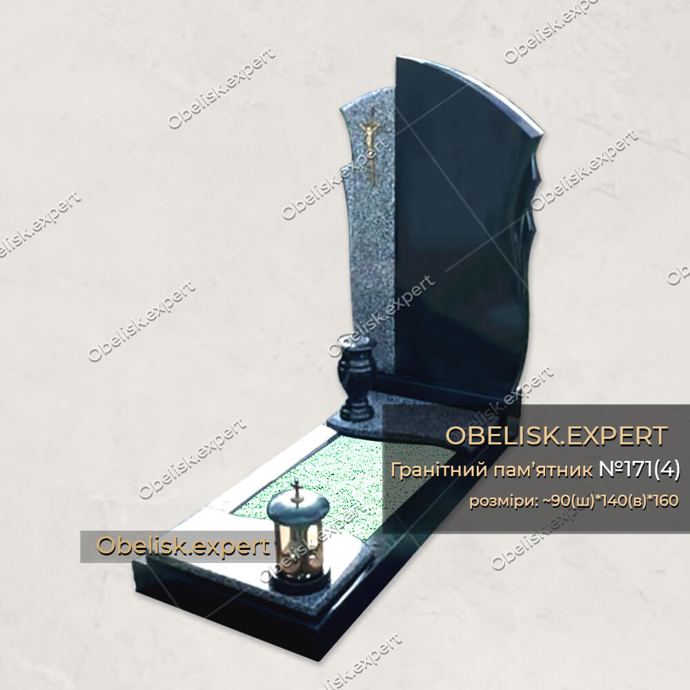 Комбінований гранітний пам’ятник з сірого та чорного каменю.