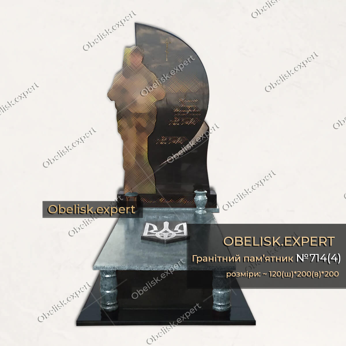 Гранітний пам’ятник для військового, з великою стелою, та з кольоровою фотографією в повний ріст.