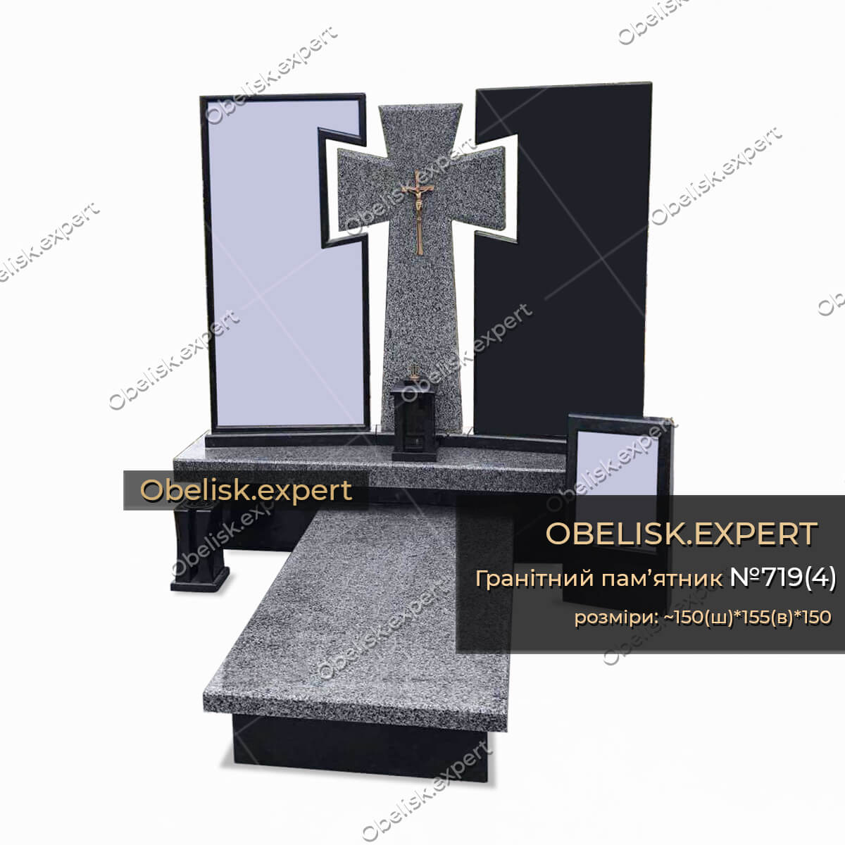 Гранітний комбінований пам’ятник для військового. Чорний і Сірий камінь.