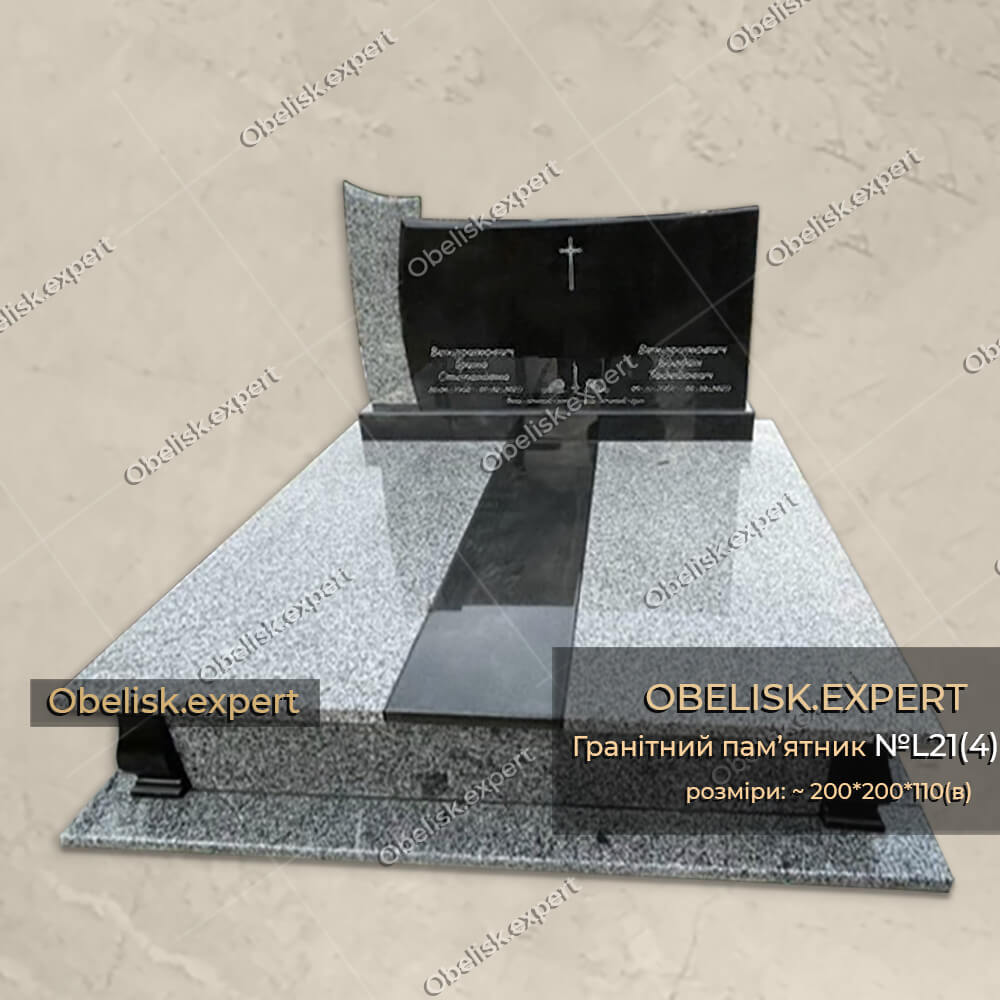 Подвійний гранітний широкий, з високим закритим квітничком пам’ятник.